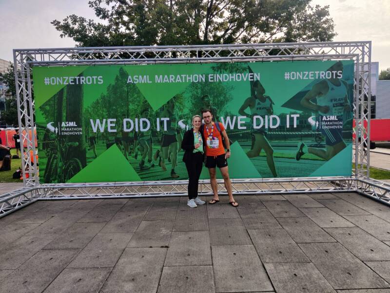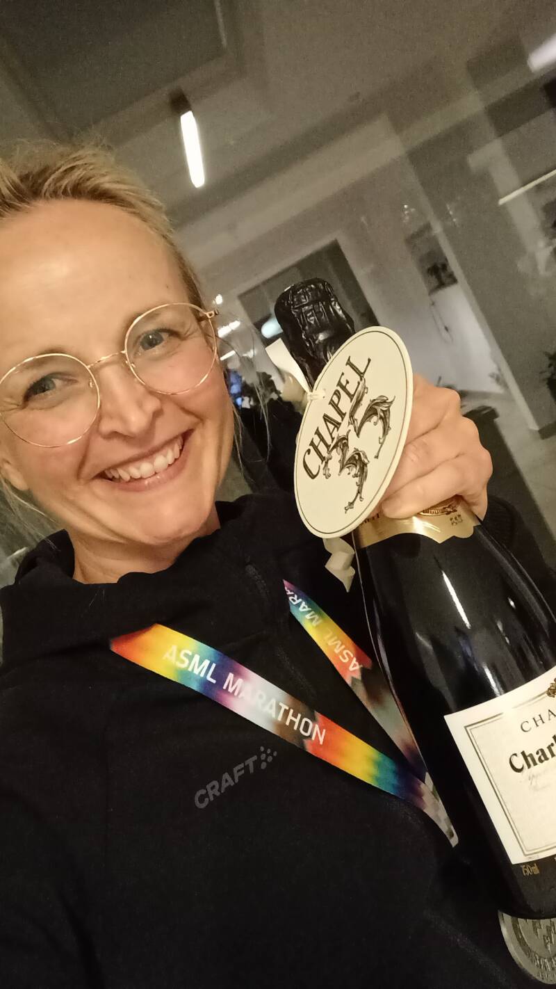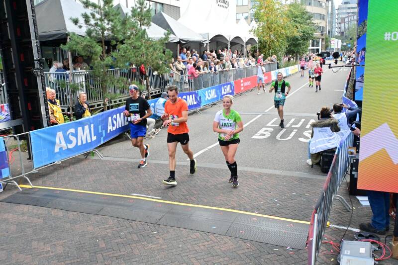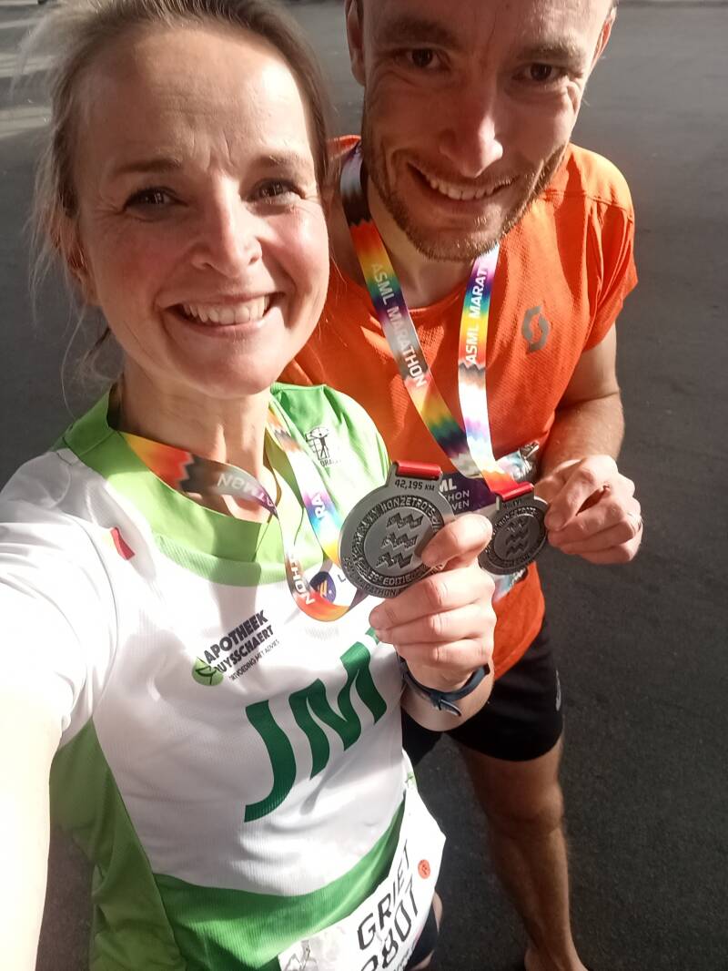 Toen mijn ploegmaatje Tini over de streep kwam, vloog ik in haar armen en toen barste ik in tranen uit. Snikken, snikken, snikken! Heel even, maar heel fel. Het moest er even uit :). We liepen allebei onze eerste marathon, we doorliepen samen het hele proces, want dat is het wel.