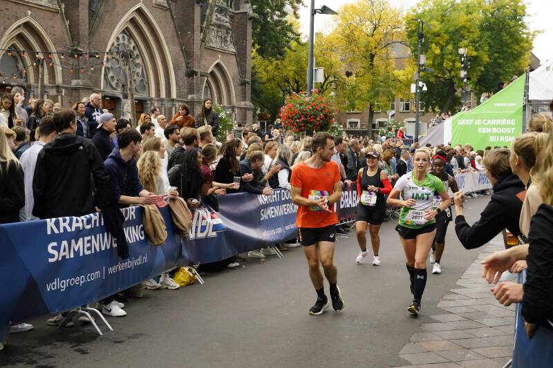 Dries bleef maar zeggen dat de laatste 2km niet zouden meetellen want daar gingen we het centrum in, in massa mensen die me zouden verder zuigen. Dit herinnerde ik me nog wel van mijn halve marathon in Eindhoven, maar toch telden die kilometers wel voor me, het waren er wel 2. Ik begon Dries naar zijn voeten te geven dat die tegen me begon aan te lopen, ik wilde het liefst gerust gelaten worden. Al wees die me erop terug dat ik het wel was die wat begon af te wijken. Oeps!